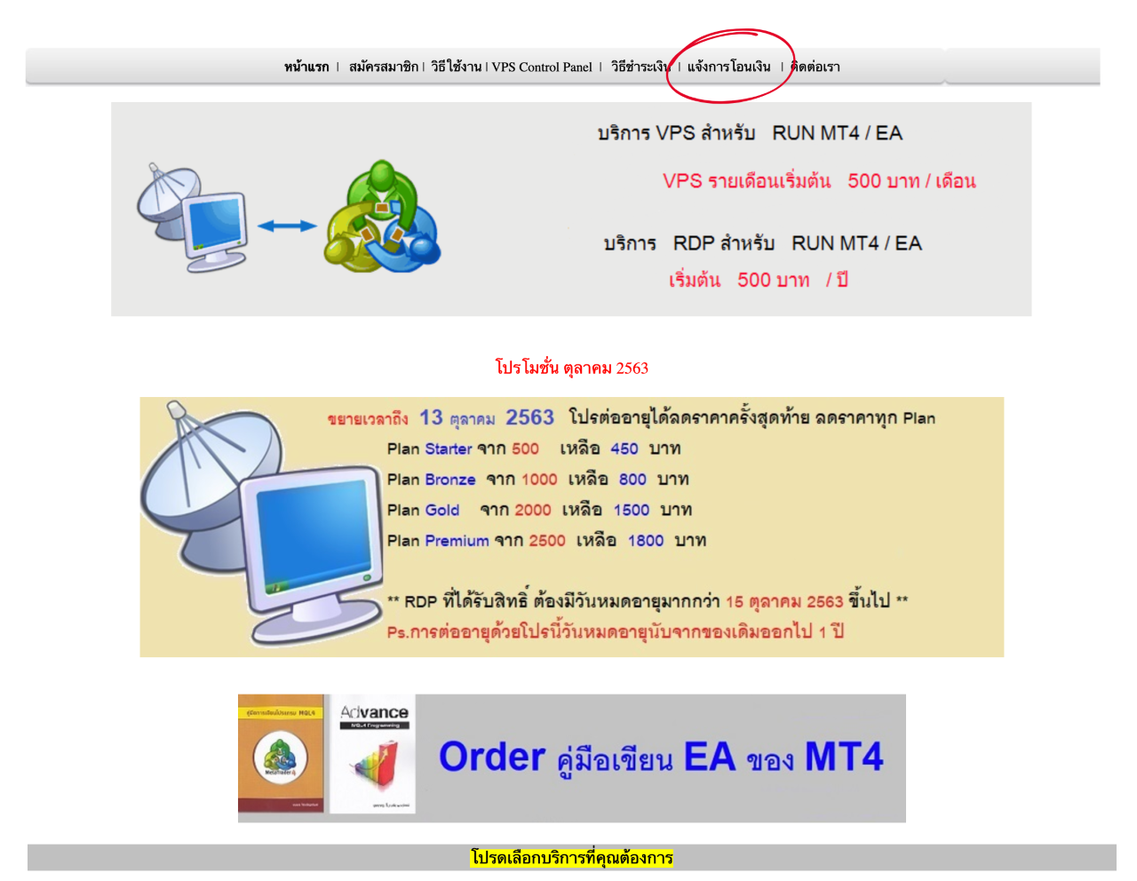 5. แจ้งการโอนเงินที่เมนู "แจ้งการโอนเงิน" ด้านบน