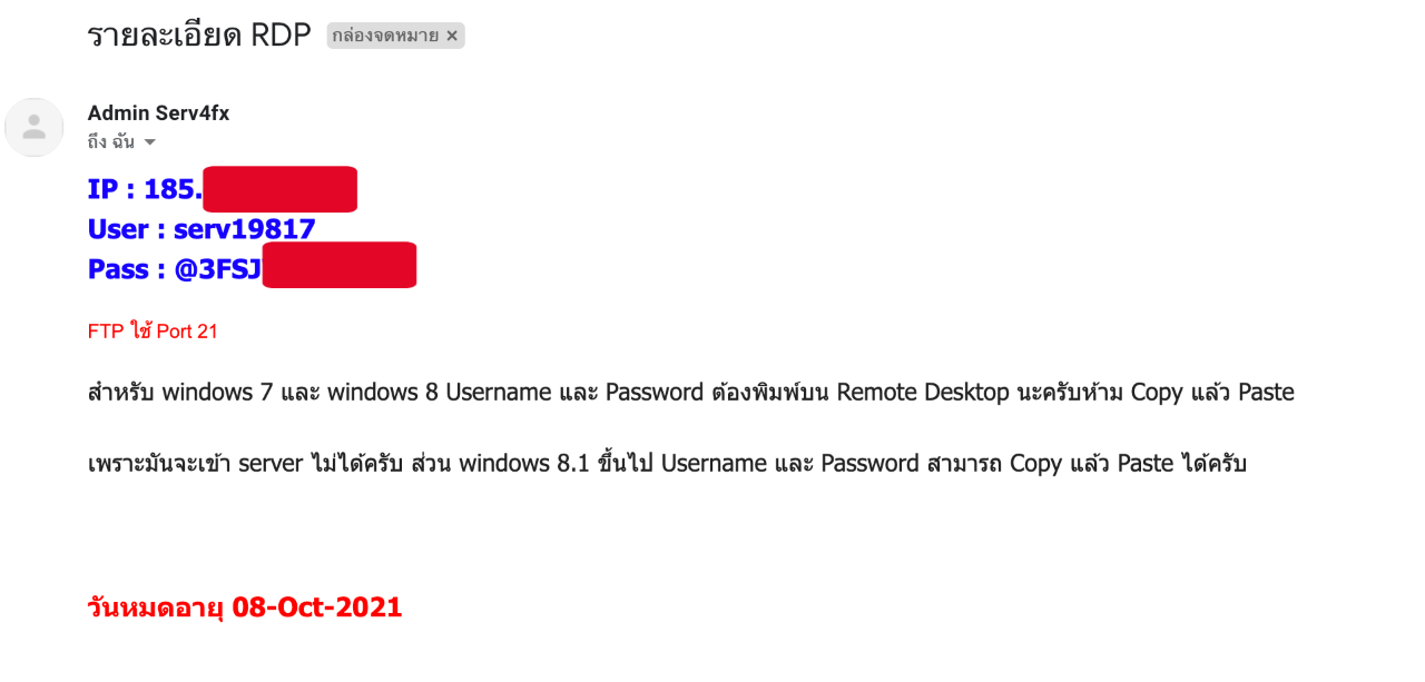 6. รอรับ Email แจ้ง IP server เก็บไว้นะครับ