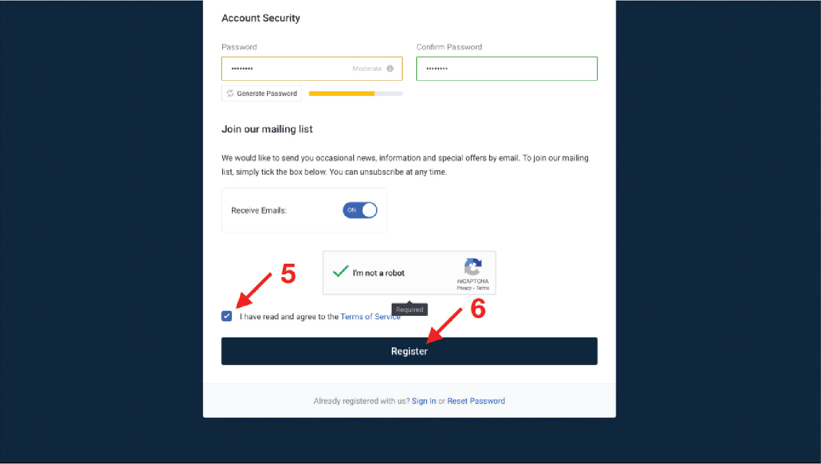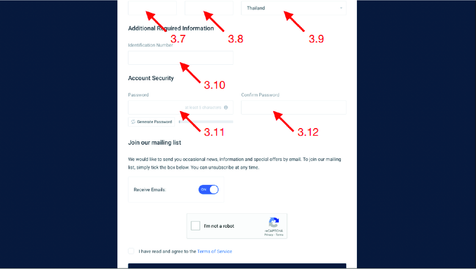 5. คลิกช่องสี่เหลี่ยม หน้าคำว่า I have read and agree to the terms of service