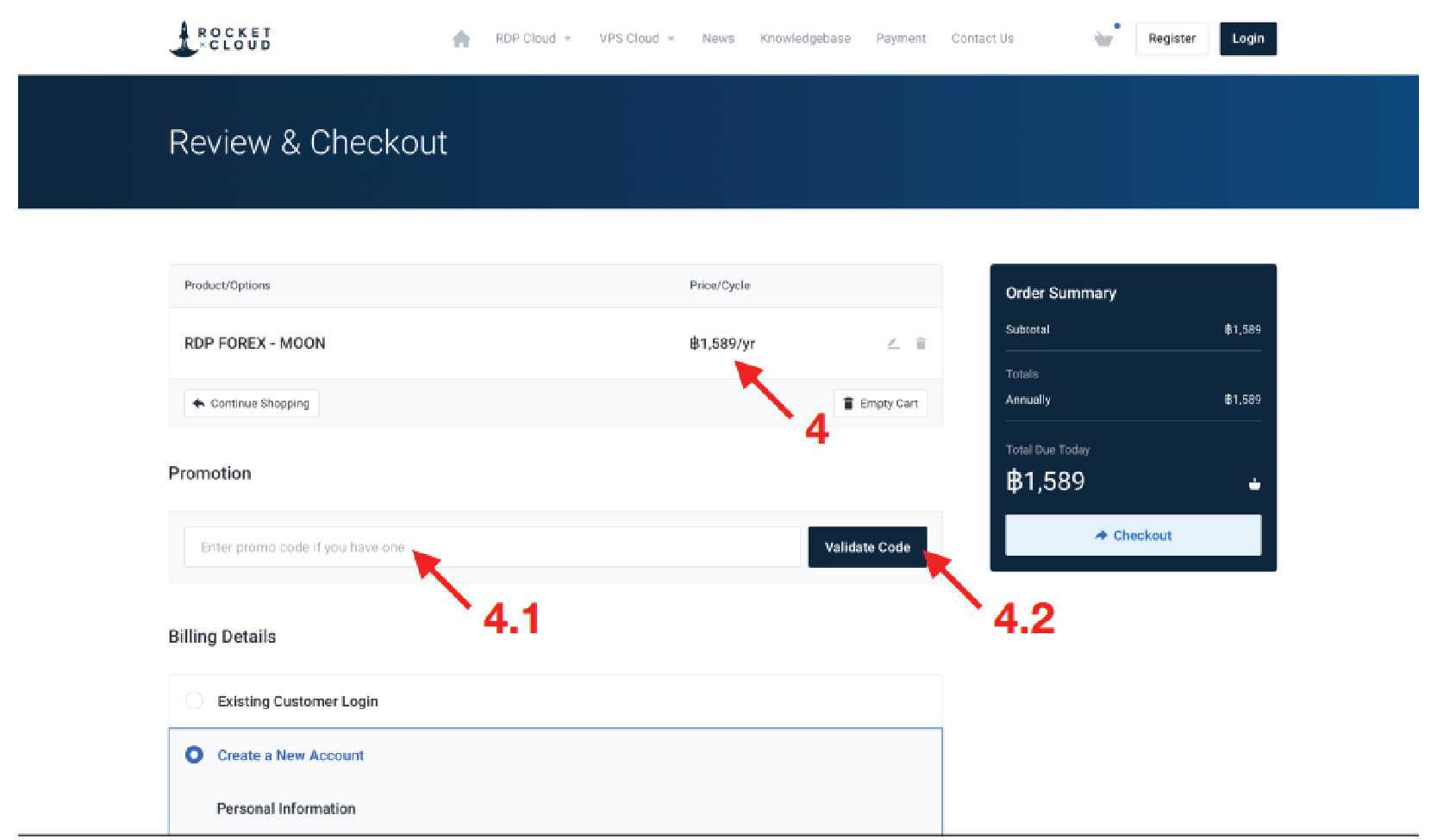 4.1 กรอกโค้ดโปรโมชั่น sharingtradeschool ในช่อง Enter promo code เพื่อรับส่วนลดพิเศษ